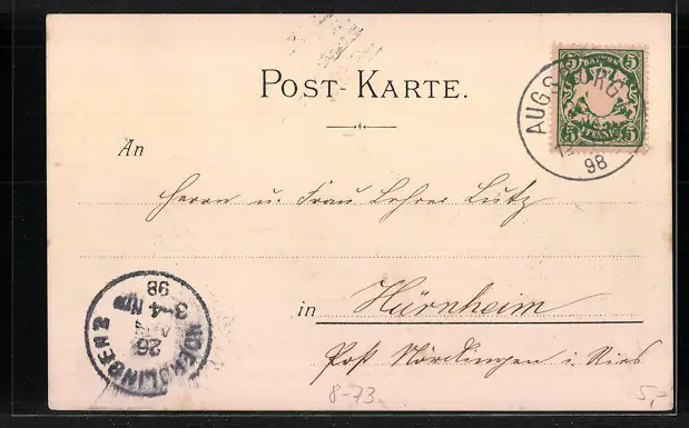 alte Ansichtskarte, gelaufen 1898, guter Zustand
