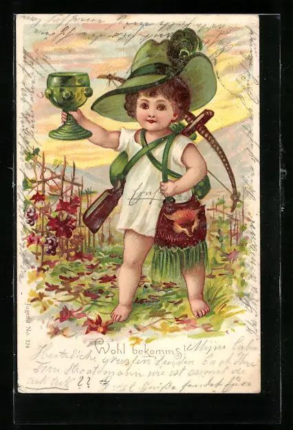 AK Kind mit Jagdgewehr und Glas in der Hand