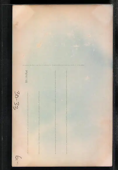 Personenbezogene Daten auf der Rückseite der Karte wurden durch blauen Textmarker unkenntlich gemacht. Die blauen Stellen sind auf die Vorderseite durchgeweicht und wirken sich negativ auf das Postkartenfoto aus