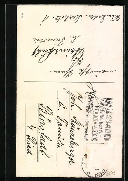 alte Ansichtskarte, gelaufen, Briefmarke entfernt, rückseitig Oberflächenschaden, guter Zustand