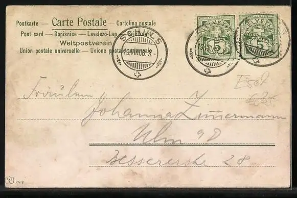 alte Ansichtskarte, gelaufen 1906, Eckknick oben re., guter Zustand