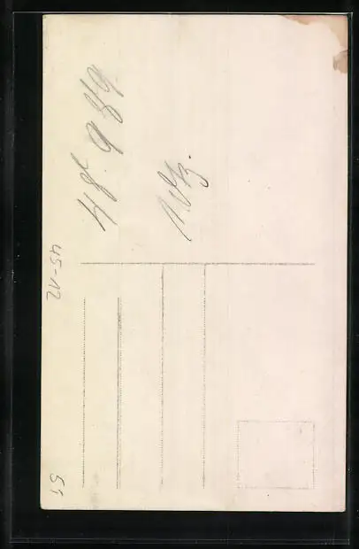 Personenbezogene Daten auf der Rückseite der Karte wurden durch blauen Textmarker unkenntlich gemacht. Die blauen Stellen sind auf die Vorderseite durchgeweicht und wirken sich negativ auf das Postkartenfoto aus