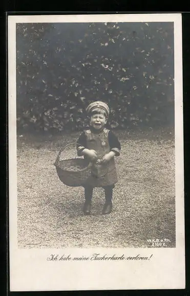 AK Kind weint wegen verlorener Zuckerkarte, Kriegsnot