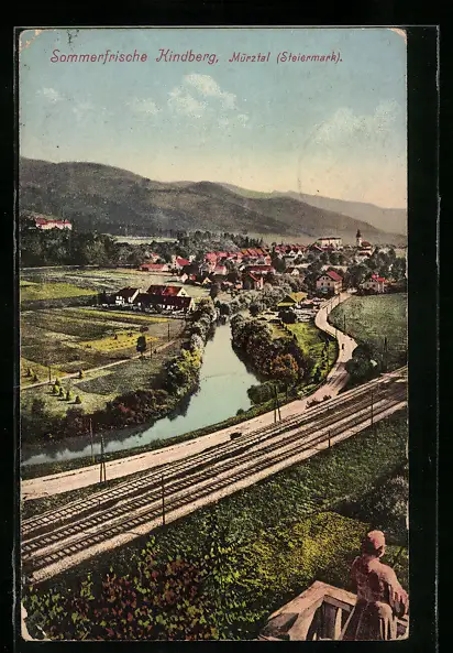 AK Kindberg, Gesamtansicht mit Bahngleisen