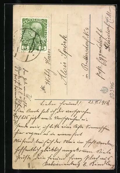 alte Ansichtskarte, gelaufen 1912, Eckknicke li., guter Zustand