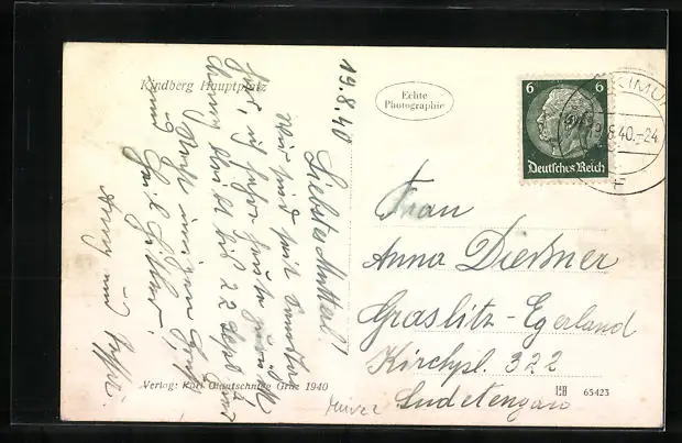alte Ansichtskarte, gelaufen 1940, Eckknick re. oben, guter Zustand