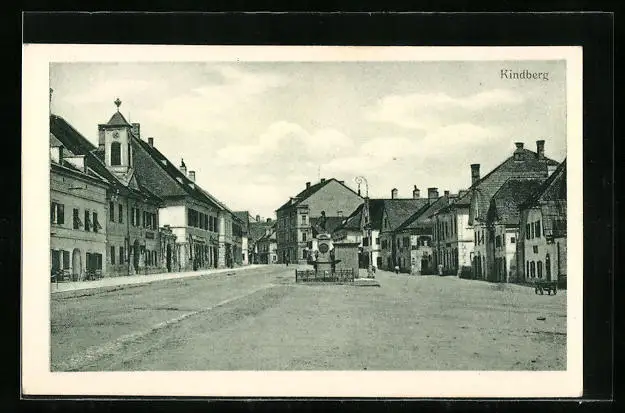AK Kindberg, Strassenpartie mit Geschäften und Denkmal
