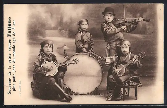 AK Kinder Jazz-Band Fallone mit Instrumenten