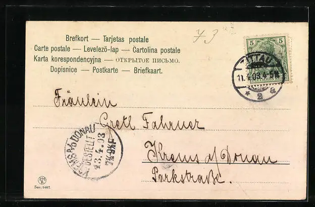gelaufen 1903, guter Zustand