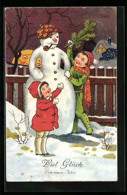 AK Kinder bauen einen Schneemann