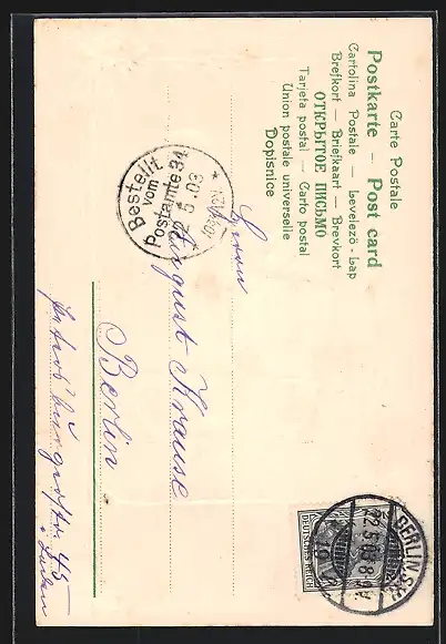 alte Ansichtskarte, gelaufen 1903, Eckknick li. unten, guter Zustand