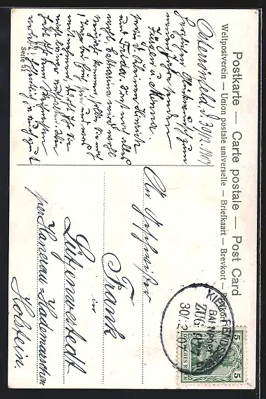 alte Ansichtskarte, gelaufen 1907, guter Zustand