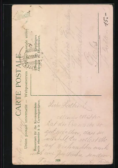 alte Ansichtskarte, gelaufen, Briefmarke entfernt, guter Zustand