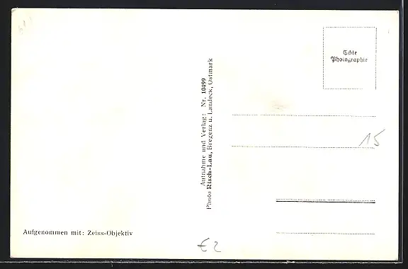 Personenbezogene Daten auf der Rückseite der Karte wurden durch blauen Textmarker unkenntlich gemacht. Die blauen Stellen sind auf die Vorderseite durchgeweicht und wirken sich negativ auf das Postkartenfoto aus