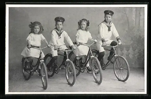 AK Kinder in Matrosenanzügen auf Fahrrädern