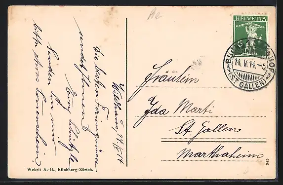 gelaufen 1914, Eckknick li. oben, guter Zustand