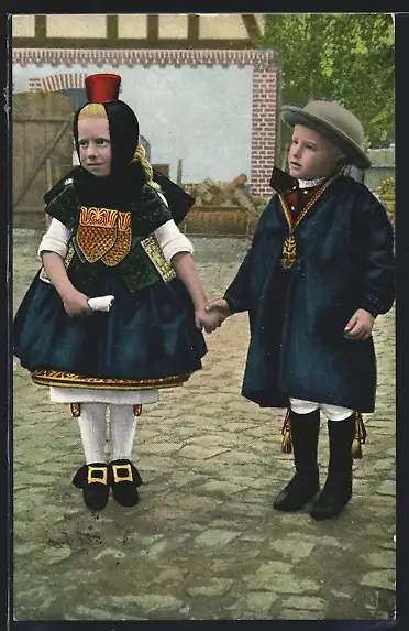 AK Kinder in hessischer Tracht