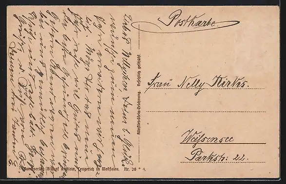 alte Ansichtskarte, gelaufen, Briefmarke entfernt, rückseitig Oberflächenschaden, guter Zustand