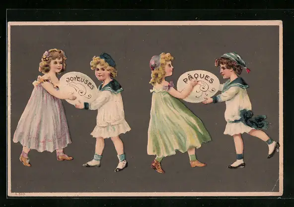 AK Kinder mit Eiern wünschen Frohe Ostern