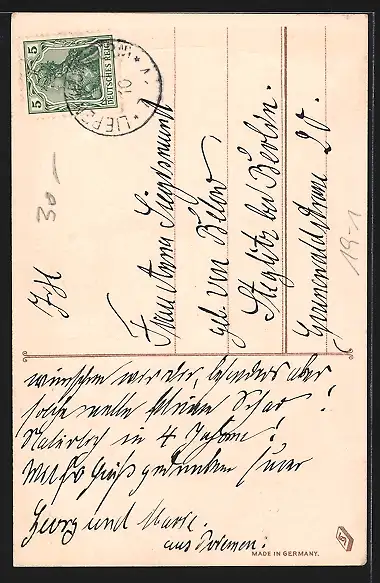 alte Ansichtskarte, gelaufen 1910, Klebe- und Papierreste unten Mitte, guter Zustand