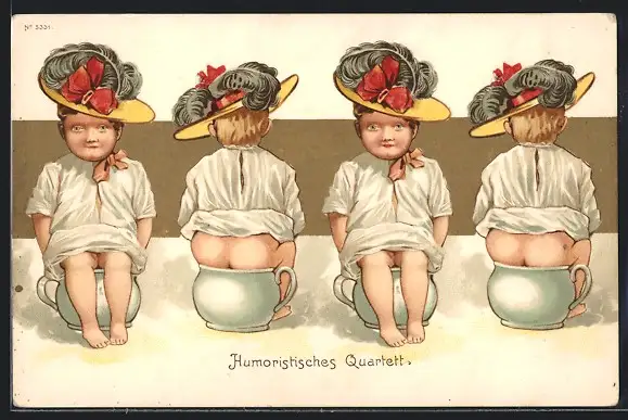 AK Kinder mit Hüten auf dem Nachttopf