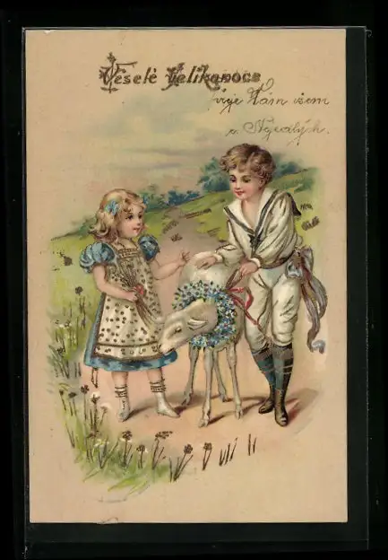 AK Kinder mit Lamm zu Ostern