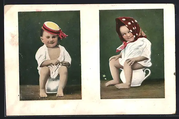AK Kinder sitzen auf dem Nachttopf, Toilettenhumor