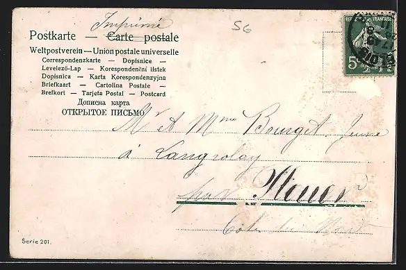 alte Ansichtskarte, gelaufen, rückseitig Oberflächenschaden, Abriebspur oben li., guter Zustand