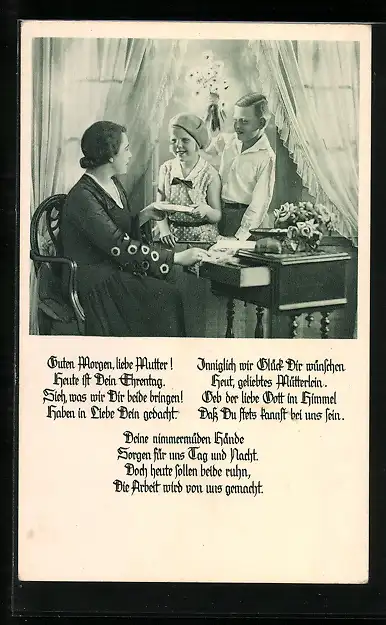 AK Kinder überreichen ihrer Mutter Geschenke zum Muttertag