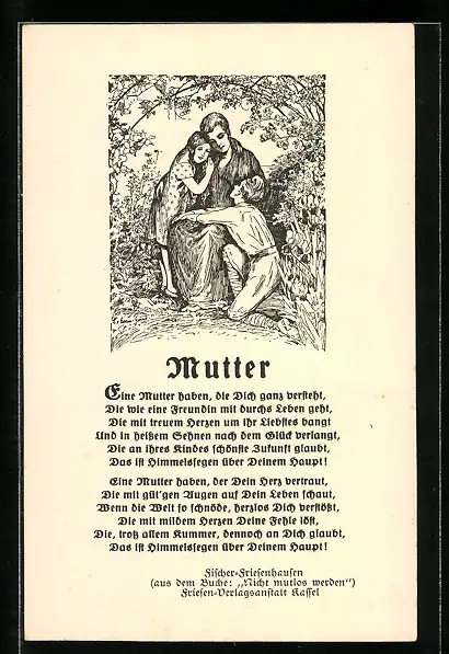 AK Kinder umarmen ihre Mutter, Muttertag, Gedicht