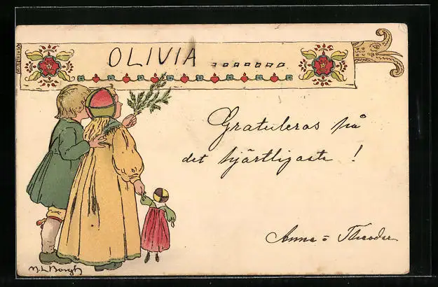 AK Kinderpaar mit einer Puppe