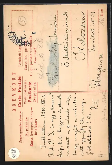 alte Ansichtskarte, gelaufen, Briefmarke entfernt, guter Zustand