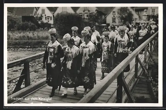 AK Kinzigtal, Frauen in Tracht auf einer Brücke