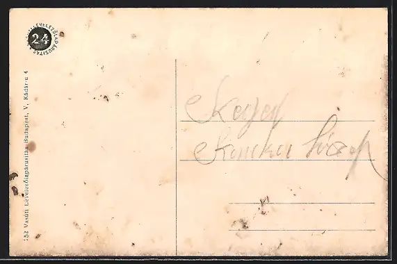 Personenbezogene Daten auf der Rückseite der Karte wurden durch blauen Textmarker unkenntlich gemacht. Die blauen Stellen sind auf die Vorderseite durchgeweicht und wirken sich negativ auf das Postkartenfoto aus