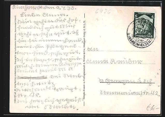 alte Ansichtskarte, gelaufen 1935, Eckknick li. unten, guter Zustand