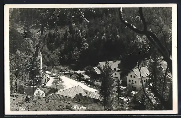 AK Kirchau, Partie an der Kirche aus der Vogelschau
