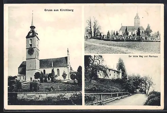 AK Kirchberg /BE, Kirche, der letzte Weg und Pfarrhaus