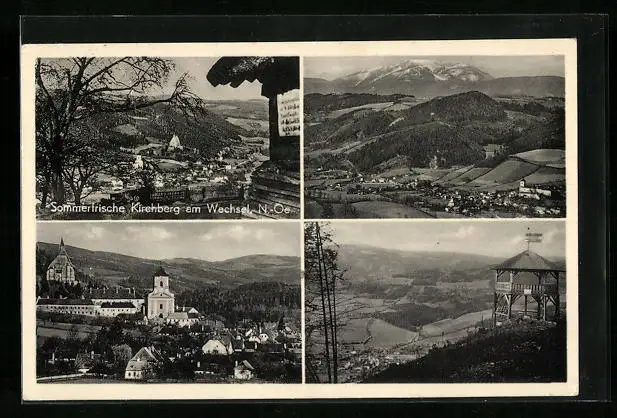 AK Kirchberg am Wechsel, Gesamtansicht, Teilansicht mit Kirche, Schutzpavillon am Berg
