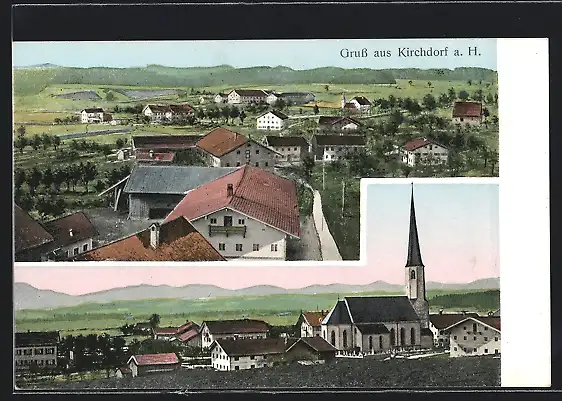 AK Kirchdorf a. H., Teilansicht aus der Vogelschau, Ortspartie mit Kirche