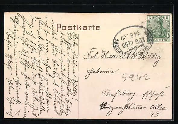 alte Ansichtskarte, gelaufen 1909, guter Zustand