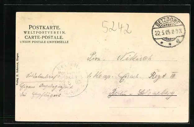 alte Ansichtskarte, gelaufen 1905, guter Zustand