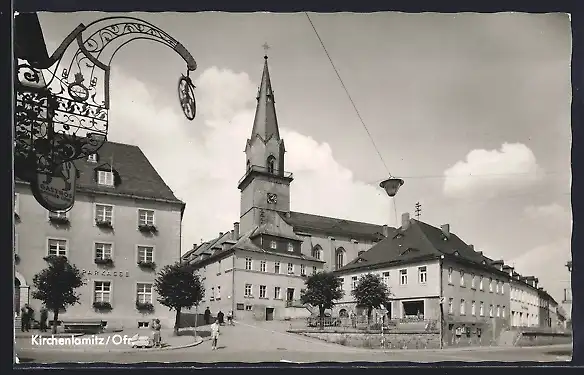 AK Kirchenlamitz /Ofr., Gasthof Goldener Löwe in der Nähe der Sparkasse und Kirche