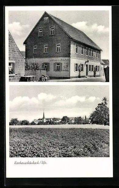 AK Kirchenschönbach /Ufr., Gasthaus zum Hirschen, Panorama des Ortes