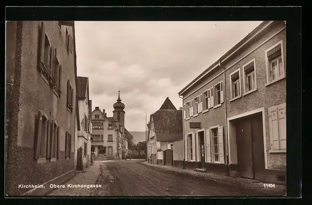 AK Kirchheim, Strasse Obere Kirchengasse mit Geschäft