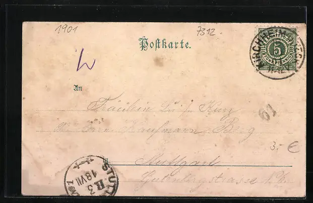 alte Ansichtskarte, gelaufen 1901, guter Zustand