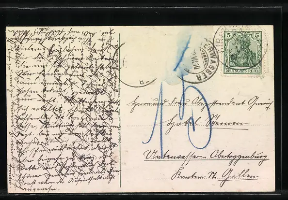 alte Ansichtskarte, gelaufen 1910, Briefmarke entfernt, guter Zustand