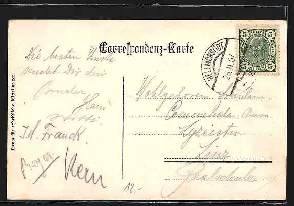 alte Ansichtskarte, gelaufen 1907, Eckknick li. unten, guter Zustand