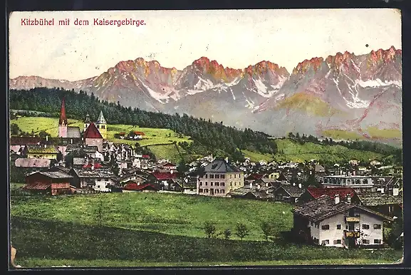 AK Kitzbühel, Blick gegen das Kaisergebirge