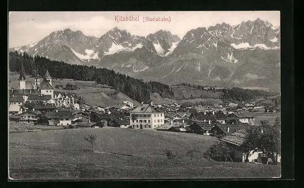 AK Kitzbühel /Giselabahn, Ortsansicht gegen das Gebirge