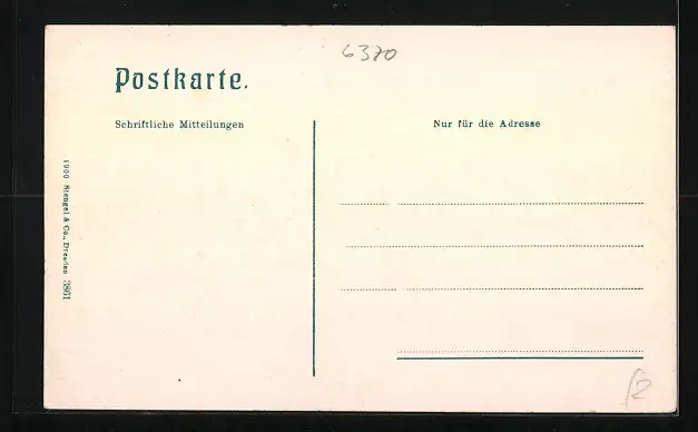 Personenbezogene Daten auf der Rückseite der Karte wurden durch blauen Textmarker unkenntlich gemacht. Die blauen Stellen sind auf die Vorderseite durchgeweicht und wirken sich negativ auf das Postkartenfoto aus